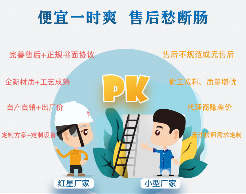 小廠家:建材市場淘一些便宜的材質或零件,生產工藝不夠規范,或二手舊設備組裝,經不起時間的考驗。